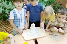 Очень любима нашими воспитанниками познавательно-исследовательская деятельность. Сегодня детки сами делали снежное тесто и лепили сниговичка. ООД по познанию "Лед-Вода".