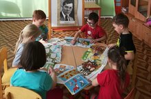 15 февраля -День рождение известного татарского писателя М.Джалиля. ДЛЯ ДЕТЕЙ СТАРШЕЙ РАЗНОВОЗРАСНОЙ ГРУППЫ БЫЛО ОРГАНИЗОВАНО ПОЗНАВАТЕЛЬНОЕ МЕРОПРИЯТИЕ, ПОСВЯЩЕННОЕ ТВОРЧЕСТВУ ПОЭТА-ГЕРОЯ. Ребят ознакомили с биографией и творчеством М.Джалиля, затем дети постарались передать все впечатления в рисунках и организовали выставку.