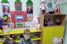 4 ноября все жители нашей страны отмечают День народного единства. Это день, посвященный национальному единству, исторической памяти, любви к Отечеству и непосредственно празднованию Дня народного Единства. Ребятам рассказали о дне народного единства, о народах, живущих в нашей многонациональной стране, о правилах гостеприимности народов, населяющих нашу страну. Дети поиграли в веселые подвижные народные игры разных национальностей. В русские народные игры : "Бабка Ежка", "Жмурки", "Мишка бурый". В татарскую народную игру "Лисичка и курочки". В украинскую народную игру " Волк и зайцы" и другие. Кроме того, воспитанники старшей разновозрастной группы посетили наш мини-музей, где рассматривали предметы быта народов поволжья. В конце дня ребята изготовили коллективную композицию "С Днем народного единства!", символизирующую хоровод народов, населяющих нашу великую страну Россию.