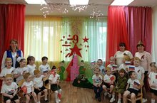 На протяжении многих десятилетий День Победы является самым святым праздником для всех граждан нашей страны. В этот день народ нашей страны окончательно победил фашистскую Германию в Великой Отечественной войне. Как дань памяти героизму советского народа 9 мая в День Победы ежегодно в центре страны на Красной площади и во всех крупных городах проходят парады и праздничные шествия, в этот день встречаются фронтовики, ветераны трудового фронта, возлагаются венки к памятникам, сверкает праздничный салют. Память об этой великой победе будет вечно передаваться из поколения в поколение. Воспитанники нашего сада также участвовали в различных акциях, посвященных этому празднику - Дню Великой Победы. Дети с удовольствием украшали "Окна Победы", учаситвовали в "Акции Георгиевкая лента", "Бессмертный полк", посетили вечный огонь и парк Победы нашего села. С глубоким уважением и трепетом читали стихи о войне. Сегодня в нашем саду был организован праздничный концерт
