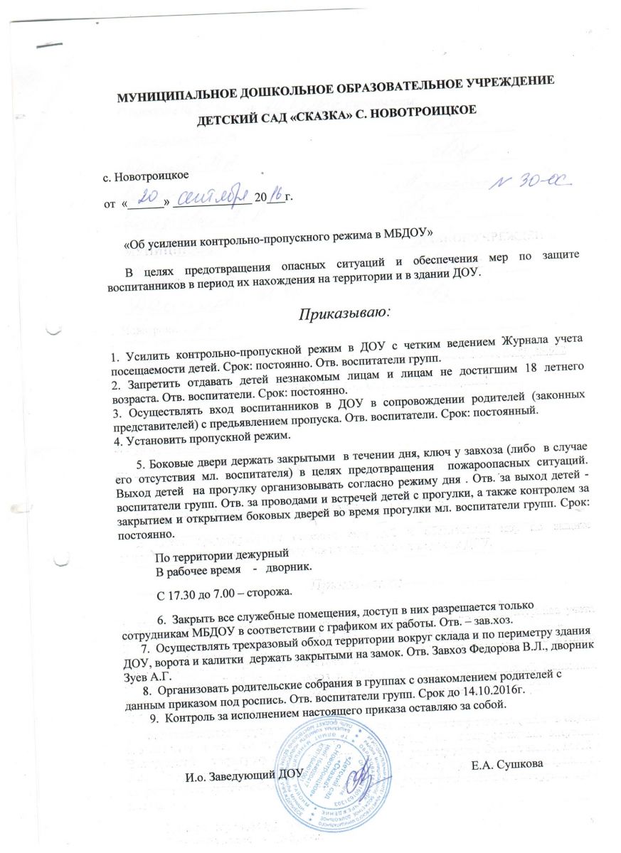Приказ "Об усилении контроль-пропускного режима в ДОУ"