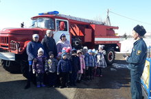 В рамках месячника пожарной безопасности в детском саду прошли тематические беседы:"Правила пожарной безопасности", "С огнем шутить нельзя". Так же провели тренировку эвакуацию с участием пожарной части нашего села.