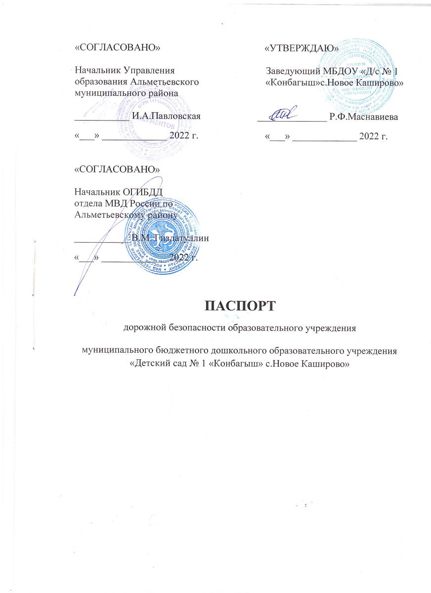 Паспорт дорожной безопасности образовательного учреждения МБДОУ "Д/ с №1 "Конбагыш"с.Новое Каширово"
