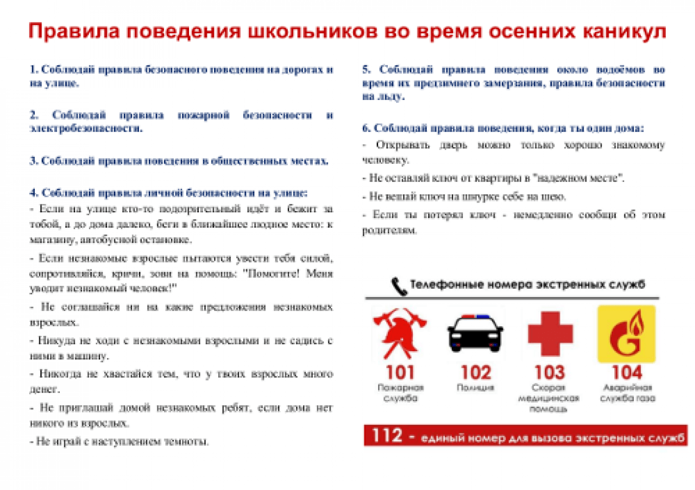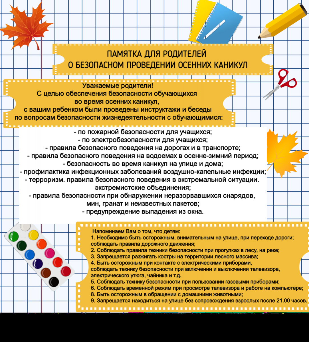 Памятки по безопасности во время школьных каникул 28.10.2020