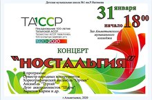 Приглашаем Вас на концерт "Ностальгия" посвященный 100 - летию ТАССР , который состоится 31 Января в 18.00 в зале Альметьевского музыкального колледжа.