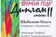 Наш преподаватель - Шабалова Ольга Петровна, получила диплом II степени в Международном конкурсе художественных открыток "Времена года" в номинации "Графика" за работу "Рождественский ангел".