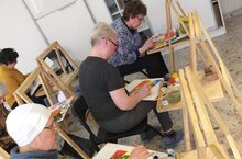 Участницы под чутким руководством преподавателя рисовали пейзаж.