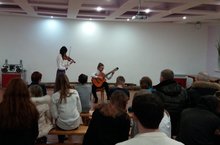Учащиеся нашей школы организовали концерт "Мелодии искусства" в СОШ №7. Волнующие звуки скрипки, гитары и аккордеона никого не оставили равнодушными. Зрители приняли артистов с восторгом, долго не хотели отпускать со сцены и были очень благодарны за чудесный концерт.