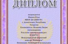 27.12.2017. На Международном творческом конкурсе "Росмедаль" (г.Красноярск) учащиеся класса преподавателя Исхаковой Л.А. стали лауреатами: II место - Иванов Илья, III место - Мифтахов Ильнар и Солдаткин Дмитрий. Поздравляем!