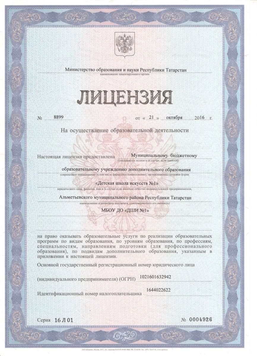 Муниципальное бюджетное образовательное учреждение дополнительного образования "Детская школа искусств № 1" Альметьевского муниципального района Республики Татарстан