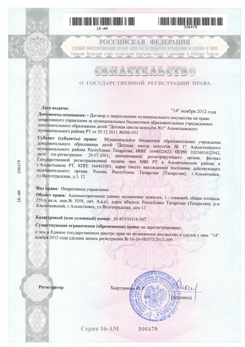 Муниципальное бюджетное образовательное учреждение дополнительного образования "Детская школа искусств № 1" Альметьевского муниципального района Республики Татарстан