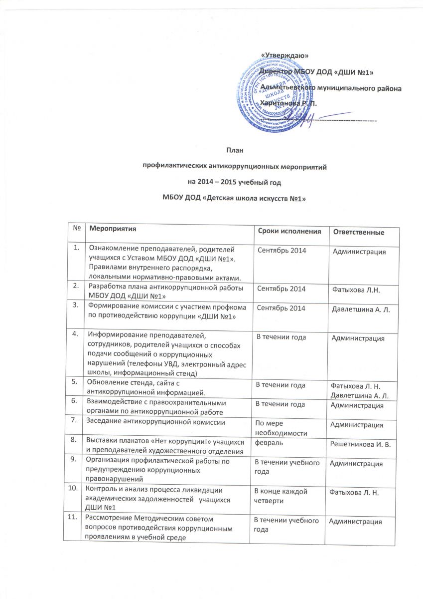 План профилактических антикоррупционных мероприятий на 2014-15 г.г.