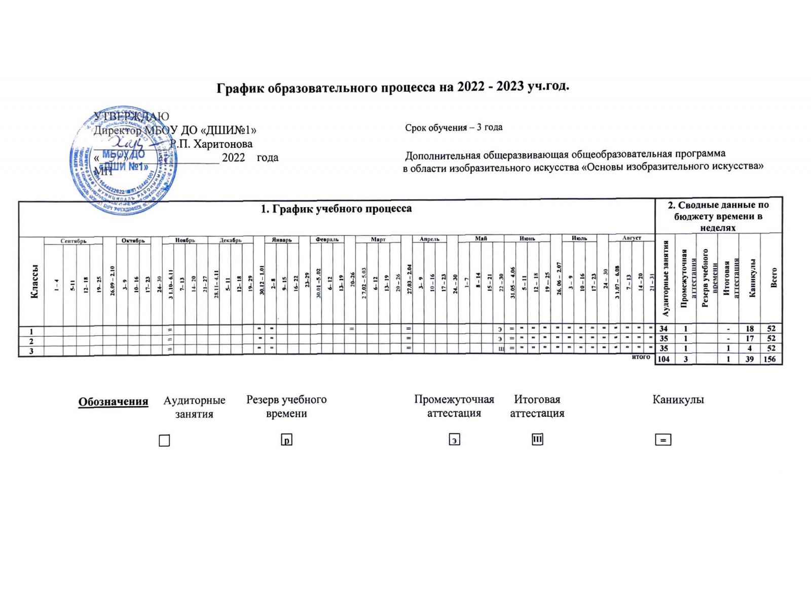 - График образовательного процесса ДООП "Основы изобразительного искусства " срок обучения 3 года. на 2022-2023 уч. год