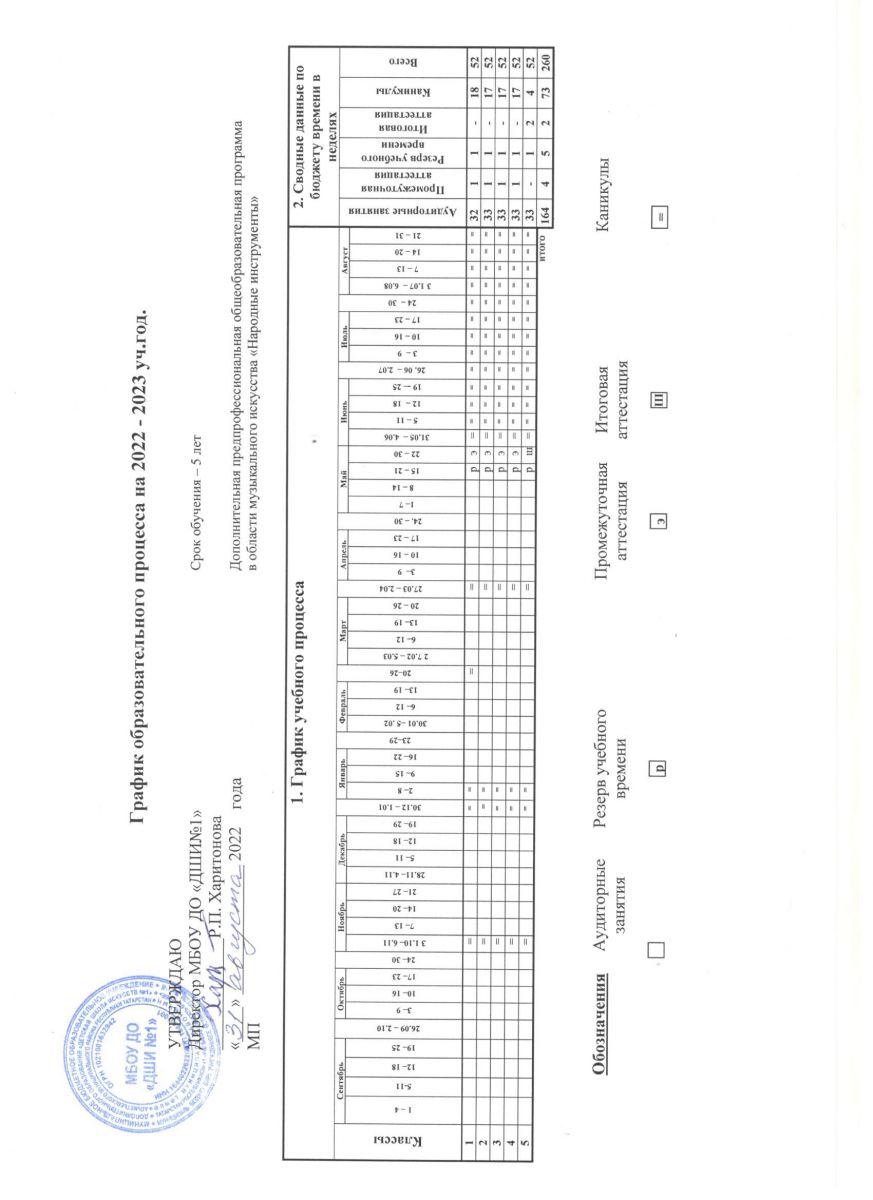 - График образовательного процесса ДПОП "Народные инструменты" срок обучения 5 лет на 2022-2023 уч.г.