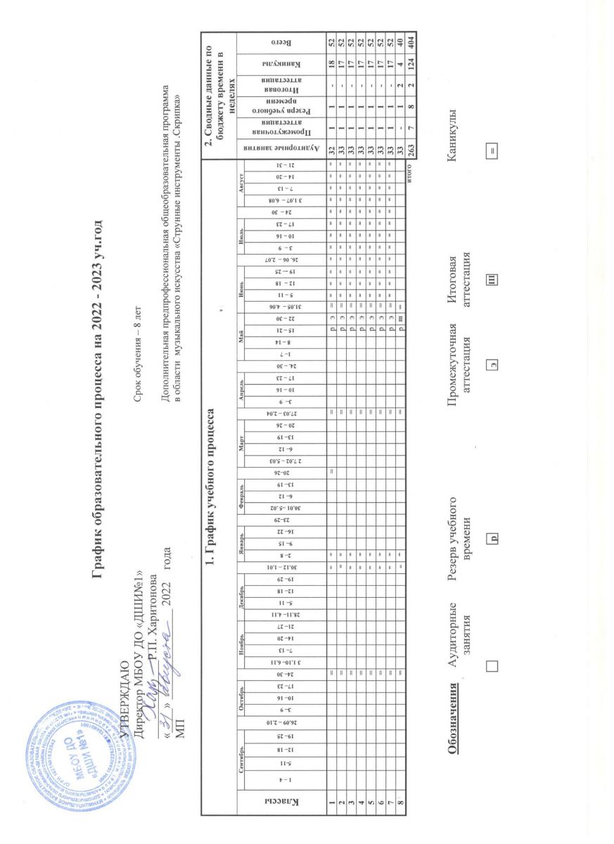 - График образовательного процесса ДПОП "Струнные инструменты.Скрипка" срок обучения 8 лет на 2022 -2023 уч.г.