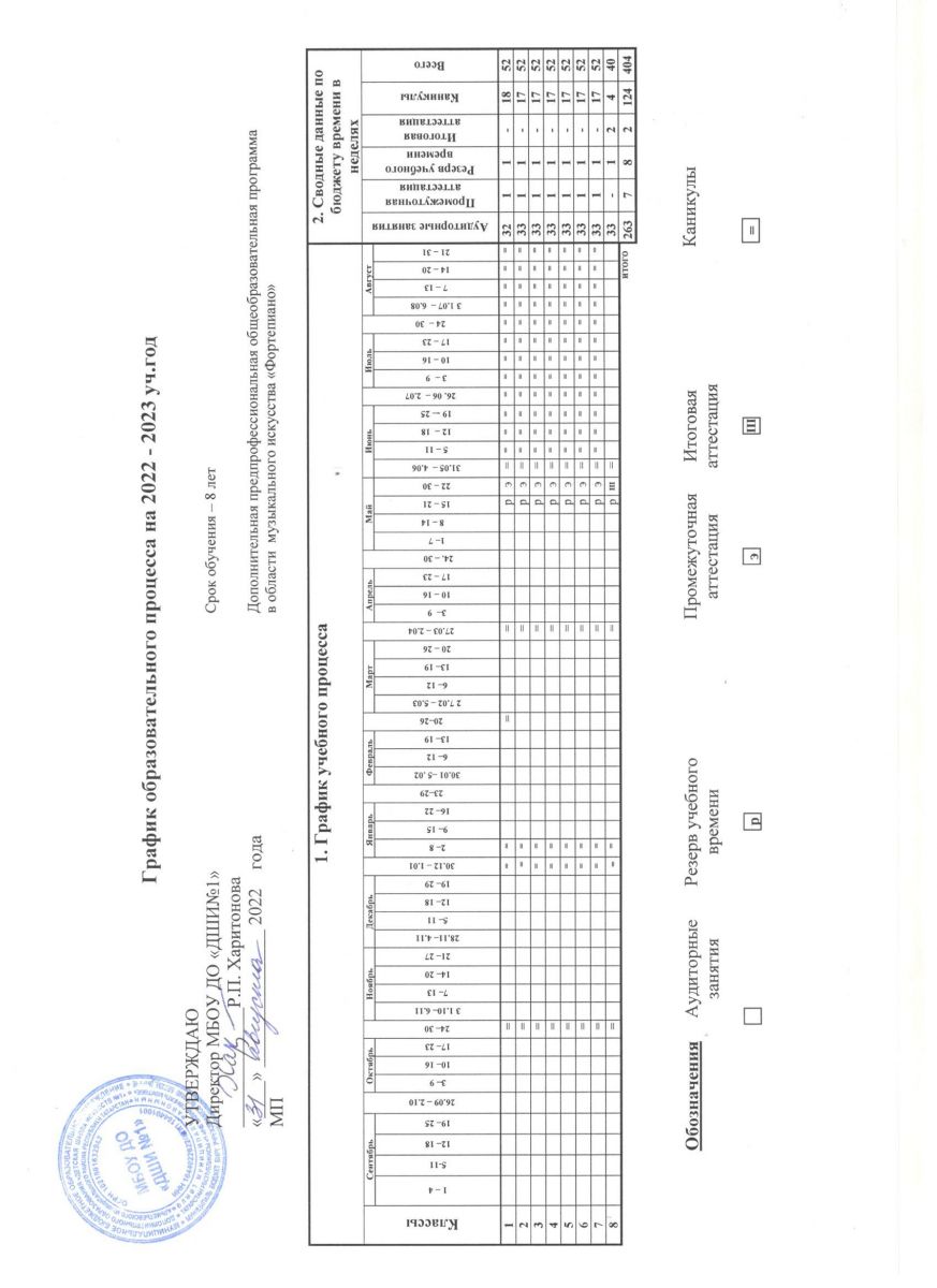 - График образовательного процесса ДПОП "Фортепиано" срок обучения 8 лет. на 2022-2023 уч. год