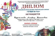В городе Тетюши состоялся Всероссийский конкурс-фестиваль творчества детей и взрослых «Тетюши Арт-Fest”, в котором преподаватель по классу вокала, заведующая предметно-цикловой комиссии "Вокальное искусство" Нургалиева Альфия Насиховна завоевала звание "Лауреат I степени" в номинации "Академический вокал".