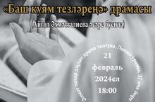 21 февраля в 18.00 час. на сцене Альметьевского татарского государственного драматического театра состоится показ дипломного спектакля студента IV курса специальности "НХТ.Театральное творчество" Ильназа Галялетдинова "Баш куям тезләреңә" (спектакль по пьесе Айгуль Ахметгалиевой)