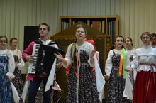 26 апреля в музыкальном колледже прошел концерт отделения НХТ этнохудожественное творчество в виде фольклорного театра. Концерт представлен в рамках юбилейного года со дня образования музыкального колледжа. На концерт были приглашены выпускники разных лет отделений СКД и НХТ, которые с удовольствием посмотрели представление, с восторгом и восхищением отметили новый взгляд на традиционные культуры. Фольклорный театр это сложное действо, включающее в себя народный театр Петрушки, народную драму, выступления солистов, народного хора и оркестра народных инструментов отдела. Представление было показано как микс основных культур региона: татарской, русской , чувашской, мордовской и т.д. Мощная энергетика студентов отделения НХТ передалась залу . что вызвало восторг, аплодисменты, желание подыграть и подпевать за юными артистами. Удивление вызвала находка студентов – раек, в котором были помещены фотографии бывших выпускников. Этот концерт – достойное завершение сезона мероприятий НХТ , которое проводит в городе подобные мероприятия в течении учебного года: это и выступления в музее, СОШ города, центре «Ветеран» и т.д.