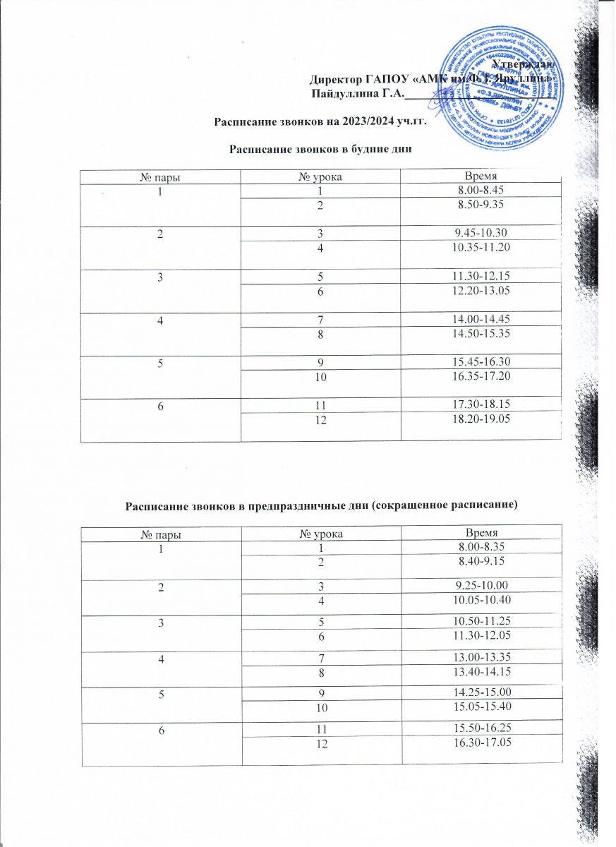 Расписание звонков