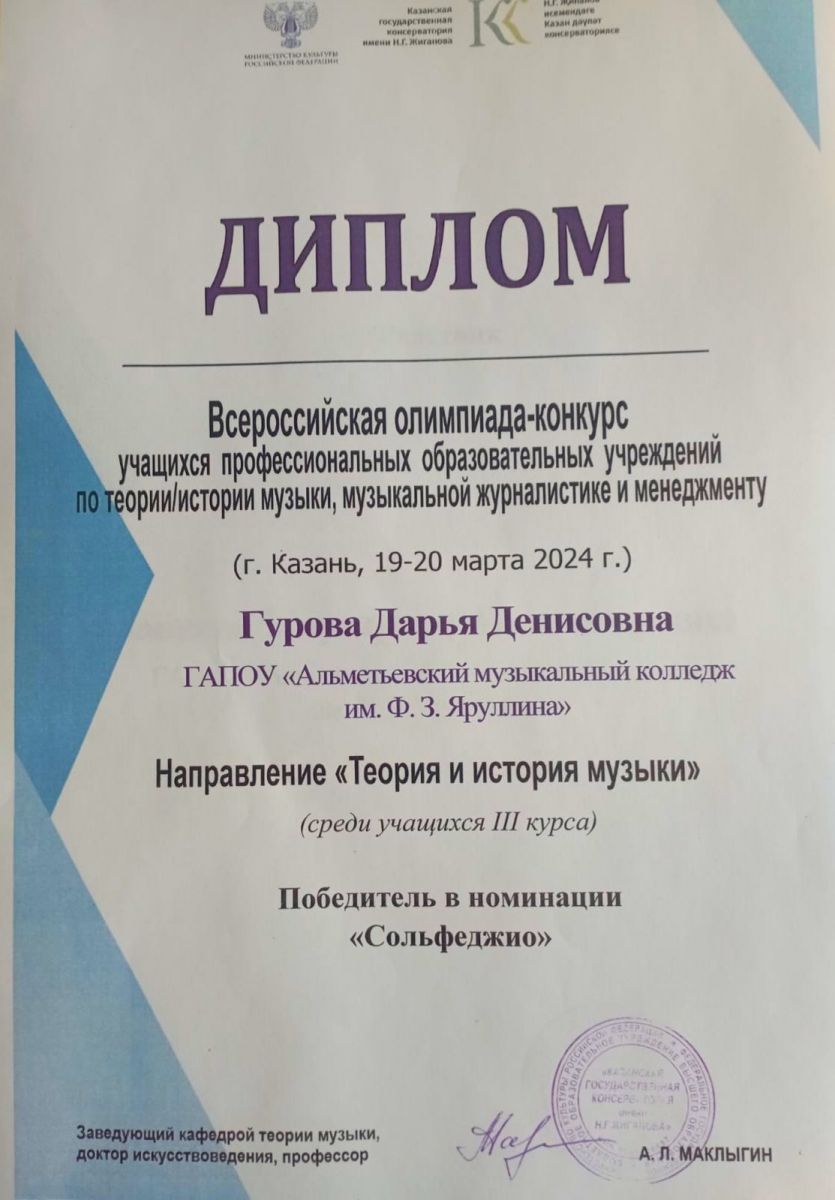 Гурова Дарья - Победитель в номинации "Сольфеджио".