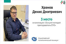 Поздравляем преподавателя ГАПОУ «Альметьевский политехнический техникум» Храмова Дениса Дмитриевича – призёра (3 место) Всероссийского конкурса «Лучший молодой преподаватель нефтегазового кластера-2021»!