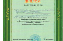 Досеев Степан (41СТО) награжден дипломом за участие в Республиканской олимпиаде профессионального мастерства по специальности 23.02.03 (190631) "Техническое обслуживание и ремонт автомобильного транспорта" среди студентов ПОО РТ. Руководитель Маслова Т.Л.
