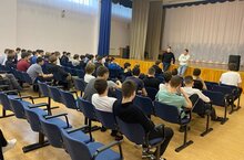 Встреча инспектора ПДН ОМВД России по Альметьевскому району лейтенанта Шарипова Раушана Махмутовича, оперуполномоченного ОУР ОМВД России по Альметьевскому району капитана полиции Идрисова Ильдара Раисовича с обручающимися 1 и 2 курсов 28.02.2022