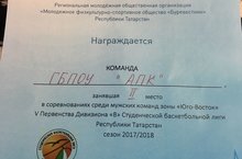 Команда ГБПОУ "АПК" заняла 2 место в соревнованиях среди мужских команд зоны "Юго-Восток" V Первенства Дивизиона "В" Студенческой баскетбольной лиги Республики Татарстан. Молодцы! Поздравляем!