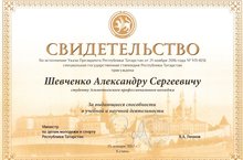 За выдающиеся способности в учебной и научной деятельности награжден студент Альметьевского профессионального колледжа группы 41 СТМ Шевченко Александр Сергеевич.