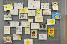 В холле 2-го этажа украшены стенды рисунками .