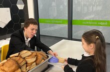Участники акции получили символическую "хлебную карточку" и кусочек хлеба. -