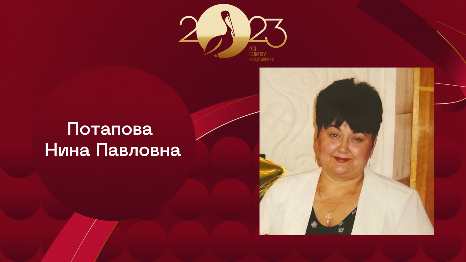 Нина Павловна Потапова 19.02.1949г.р. (с. Новое Маврино Альметьевского, ныне Заинского района ТАССР). Педагог, опытный методист, грамотный руководитель и хозяйственник, экспериментатор и новатор, отличник народного просвещения и отличник просвещения СССР, заслуженный учитель РФ, кандидат педагогических наук.