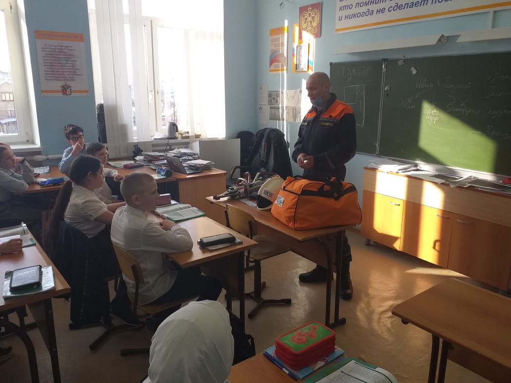 На уроке до обучающихся была доведена законодательная база РФ в области Пожарной безопасности. Ребята в группах отработали алгоритмы действий в случаях возникновения пожаров, были ознакомлены со статистикой пожаров в РТ за 2021 год. Инспектор ОНД и ПР по АМР Муртазин Р.А. довел до обучающихся меры предосторожности и правила поведения в случае возникновения пожара. Также рассказал об учебных заведениях МЧС и условиях обучения в них. Мероприятие прошло в дружественной атмосфере.