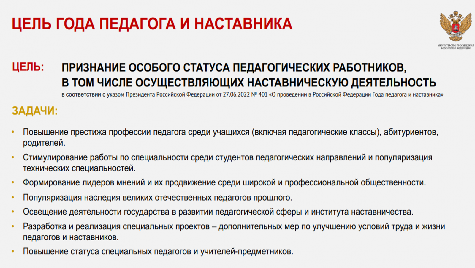 Цель Года педагога и наставника