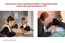 В творческой работе группы воссоздан сюжет картины «Домашняя работа» В.Серова.