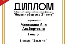 Мелешина Яна (группа 106) приняла участие во Всероссийской научной конференции в секции Экология.