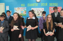 В рамках акции "Весенняя неделя добра" - пятый день прошел под девизом "День добрых услуг", где зам.директора по ВР Макарова раздала учащимся 8-11 классов "треугольники", в которых находилась информация о маршале Г.К.Жукове (Эту акцию проводит в г. Альметьевске частный предприниматель)