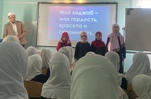 13 февраля в школе было проведено воспитательное мероприятие” Мой хиджаб-моя гордость, красота и скромность". На мероприятие были приглашены учащиеся ” Альметьевского исламского медресе им.Р.Фахретдина”. Они показали девочкам мастер-классы по красивому и удобному завязыванию хиджаба.