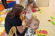 Первое знакомство уже состоялось, малыши вместе с мамами танцевали, резвились и играли. Все встречи проходят в теплой домашней обстановке, чтобы ребенок быстрее адаптировался к детскому саду.