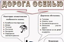 Наступившая осень приносит холода и дождь.Осенний период опасен для пешеходов, так как тормозной путь автомобиля на скользкой дороге значительно увеличивается. Как правило, водитель не может вовремя среагировать. Именно поэтому пешеходам категорически запрещается переходить дорогу перед близко идущим транспортом. Помните, что движение пешеходов должно осуществляться навстречу движущемуся транспорту, т.е. по левой стороне, т.к. наиболее безопасно. Из-за тумана и недостаточного обзора ночью проезжая часть становится плохо видимой. Это значительно затрудняет ориентацию на дороге и даёт возможность внезапному появлению автотранспорта.