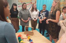 Руководитель программы развития профессиональных компетенций педагогов в проекте "Высокое качество образовательной среды.." Елена Анатольевна Аккуратова провела в нашем саду тренинг для всего коллектива на тему: "Положительная эмоциональная сфера коллектива. Актерское мастерство в педагогической работе: воздействие словом, многозначность жестов".
