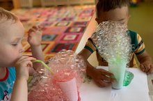 Цель: выявить удивительные свойства мыльных пузырей .Создать праздничную атмосферу ,благоприятное эмоциональное состояние детей .Познакомить со способами выдувания пузырей, доставить удовольствие и положительные эмоции от совместного общения, обогащать опыт сотрудничества, дружеских взаимоотношений со сверстниками