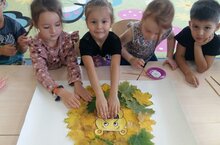 Цель: развитие у детей художественно-творческих способностей, воспитывает у детей терпение, усидчивость и фантазию. Учить рассматривать осенние листочки разной формы и сравнивать со знакомыми предметами или их частями, показать аналогии с конструированием из листьев.