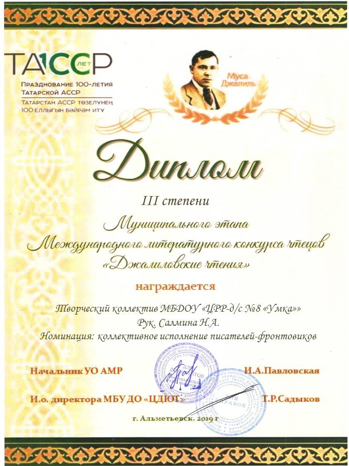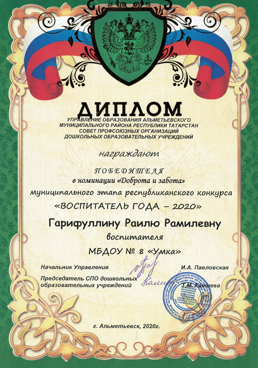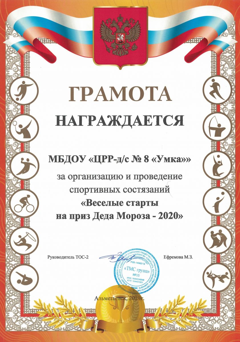 Муниципальное бюджетное дошкольное образовательное учреждение «Центр развития ребёнка - детский сад № 8 «Умка» г. Альметьевска» РТ