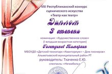 VIII Республиканский конкурс сценического искусства «Театр как театр», г. Альметьевск 18.04.2022