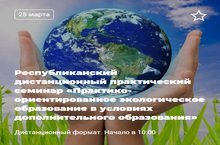 Приглашаем на республиканский дистанционный практический семинар на тему «Практико-ориентированное экологическое образование в условиях дополнительного образования», г. Альметьевск 09.03.2022