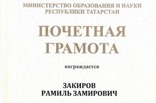 Почётная грамота Министерства образования и науки Республики Татарстан 24.01.2022