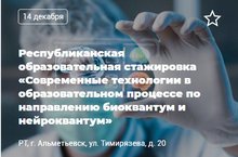 Приглашаем на республиканскую образовательную стажировку педагогов дополнительного образования технической направленности на тему «Современные технологии в образовательном процессе по направлению биоквантум и нейроквантум», г. Альметьевск 01.12.2021