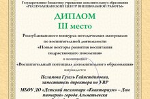 Республиканский конкурс методических материалов по воспитательной деятельности «Новые векторы развития воспитания подрастающего поколения», г. Казань 06.12.2021